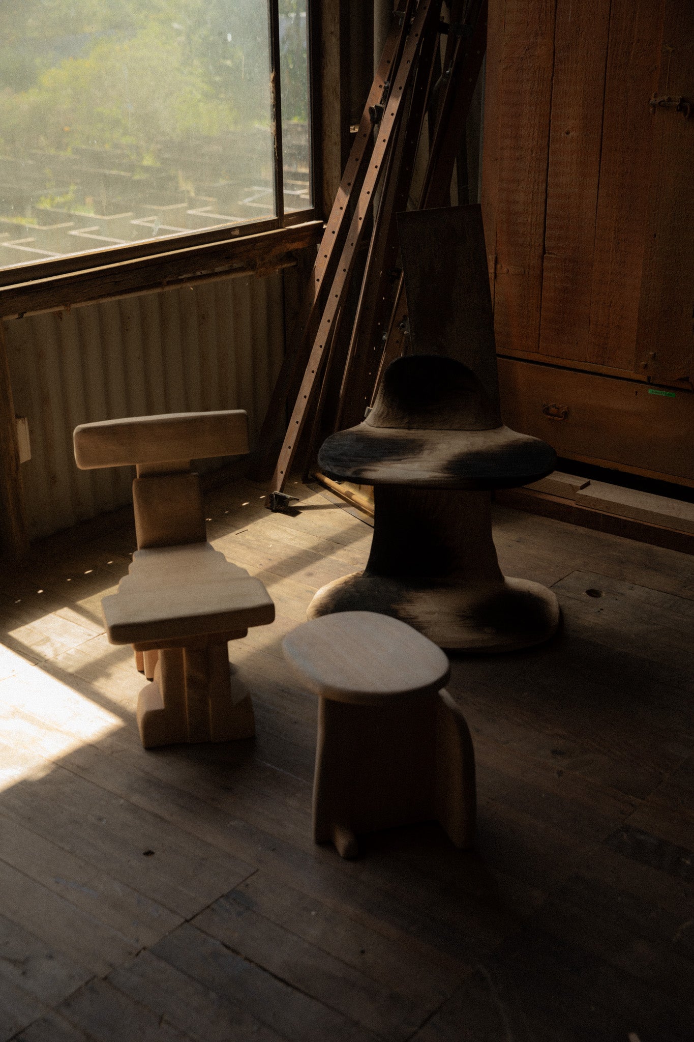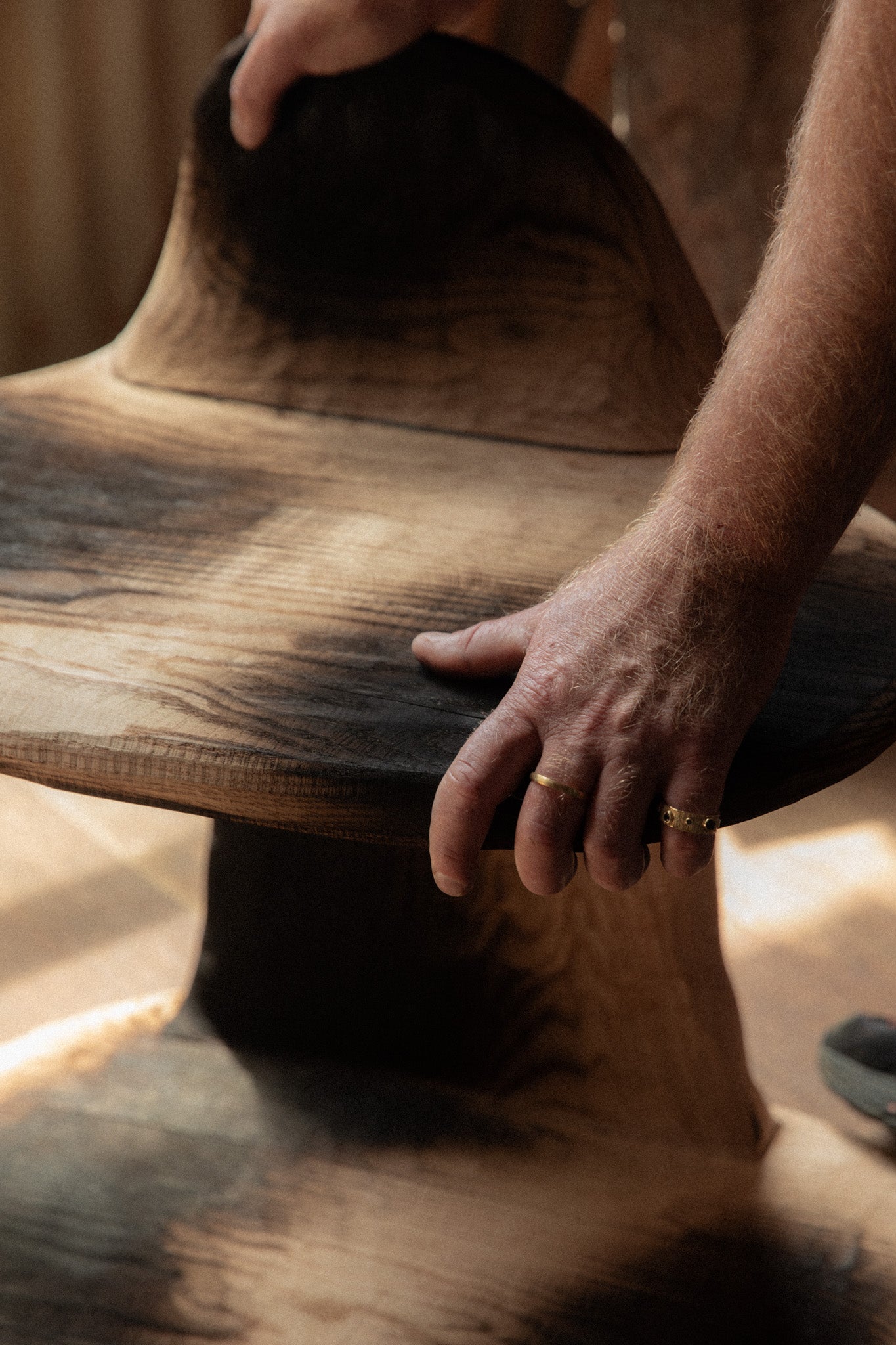 In our latest instalment, we spoke to Alexis Williams inside his Arakwal studio, where he designs and sculpts bespoke timber furniture. Lex’s work is deeply rooted in his connection to natural materials, creating pieces that honour their raw beauty and character.