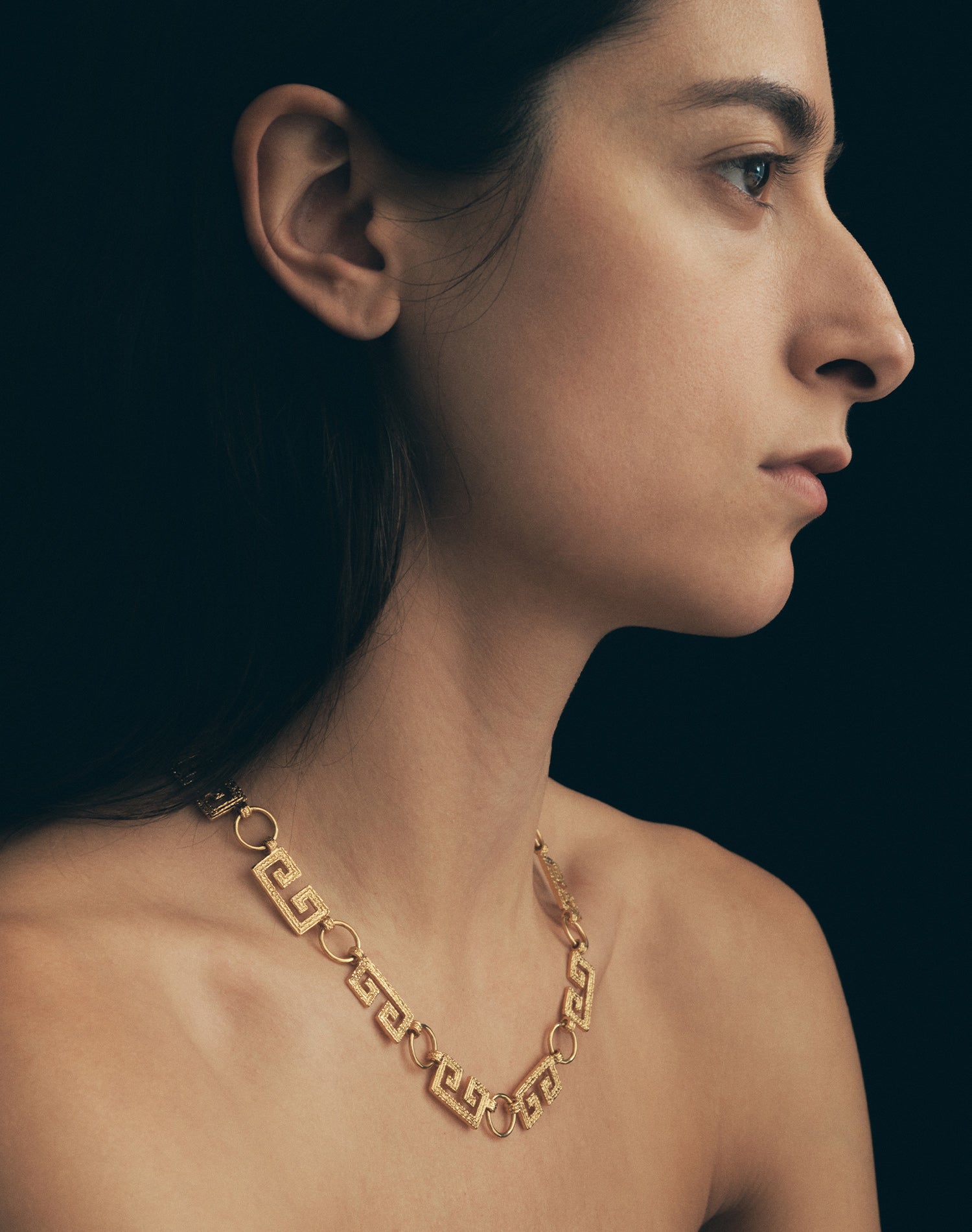 Influenced by the antiquities discovered by founders Darren and Yonna throughout their travels, Agora draws inspiration from the artistry of ancient civilizations such as the ubiquitous Greek Key pattern, Minoan Axe motifs and a modern adaptation of the ancient serpent symbol.