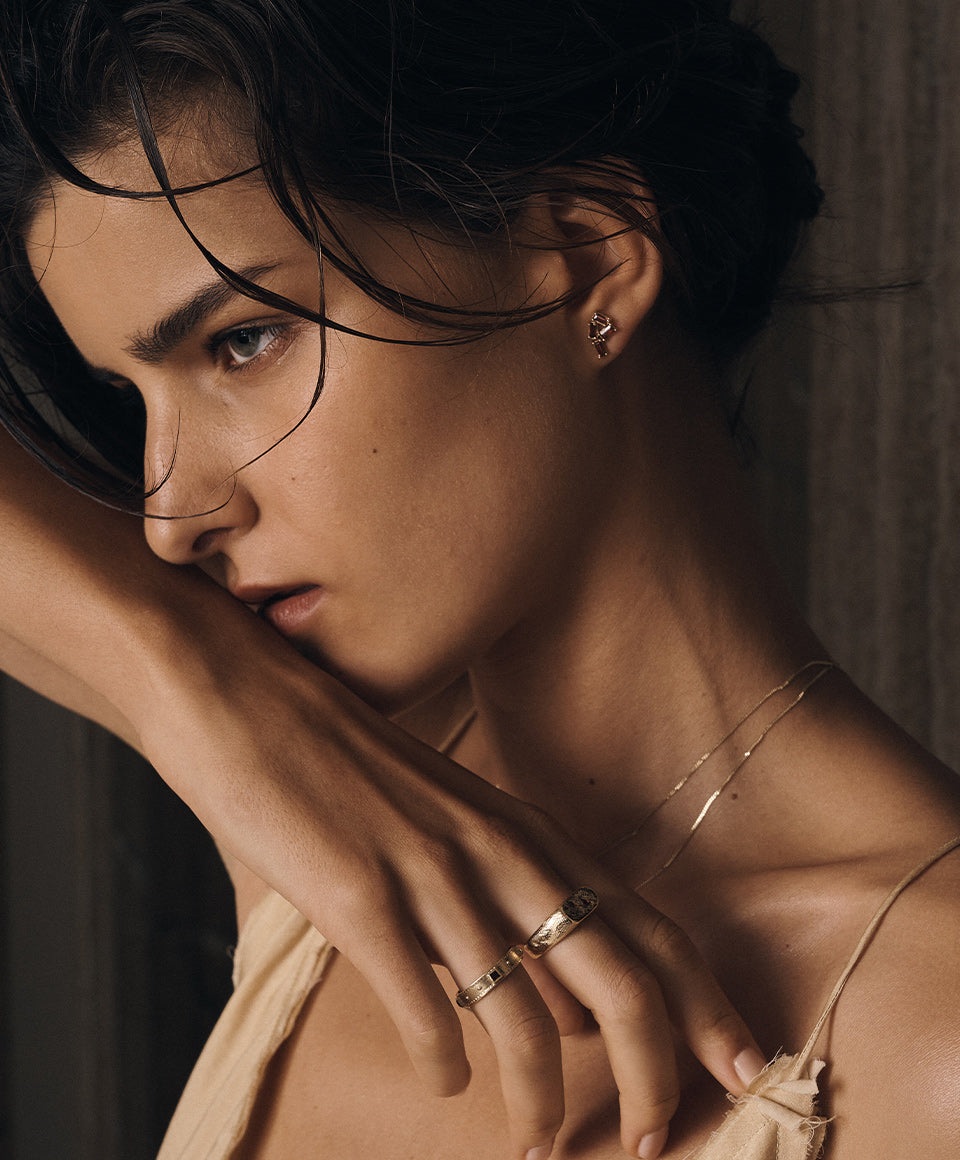 Temple’s Demi-Fine jewellery collection, Cosmo, explores the flow of nature, allowing for moments of rush and reflection. Crafted in 18k gold vermeil and recycled sterling silver, the offering features lab diamonds and natural gemstones that recall the spark of the constellations. Blending past and present, discover timeless earrings, necklaces, rings and chains.