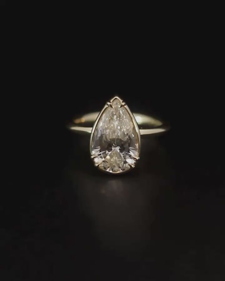 A contemporary solitaire ring inspired by nature, the Azalea Ring showcases an approx 3.0ct Pear Cut Diamond. The diamond captures light from every angle, echoing the enduring beauty of the azalea flower.