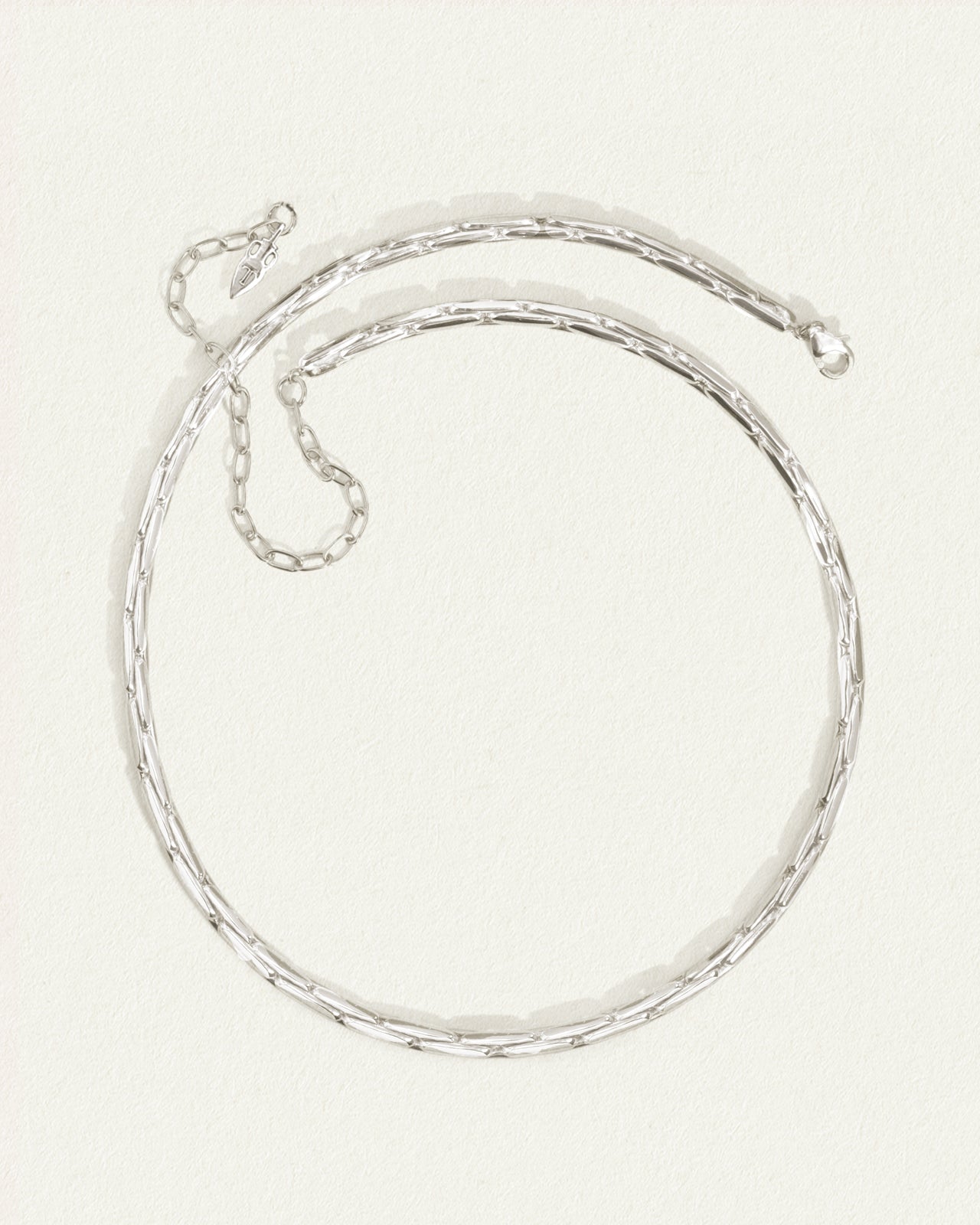 Symbolizing and adaptability, this chain necklace embodies supple movement. A poetic tribute to the beauty found in graceful transitions.