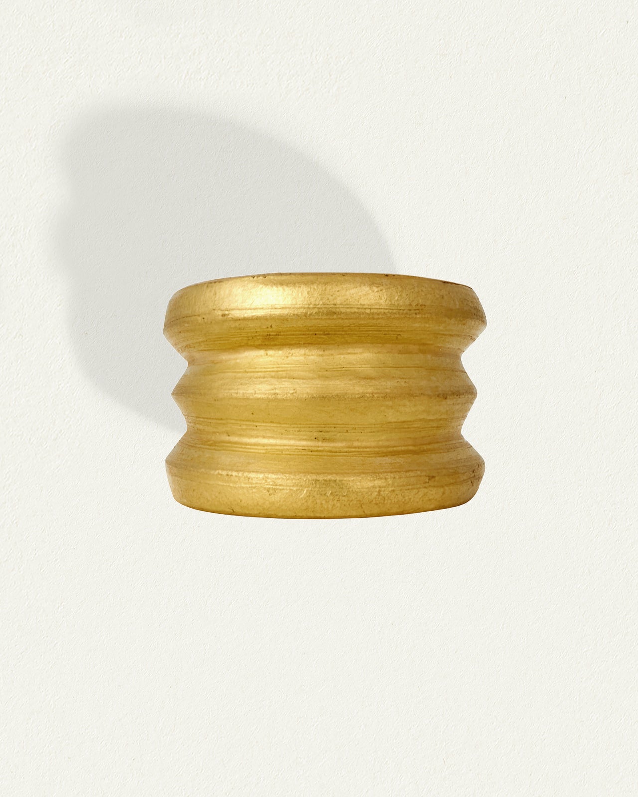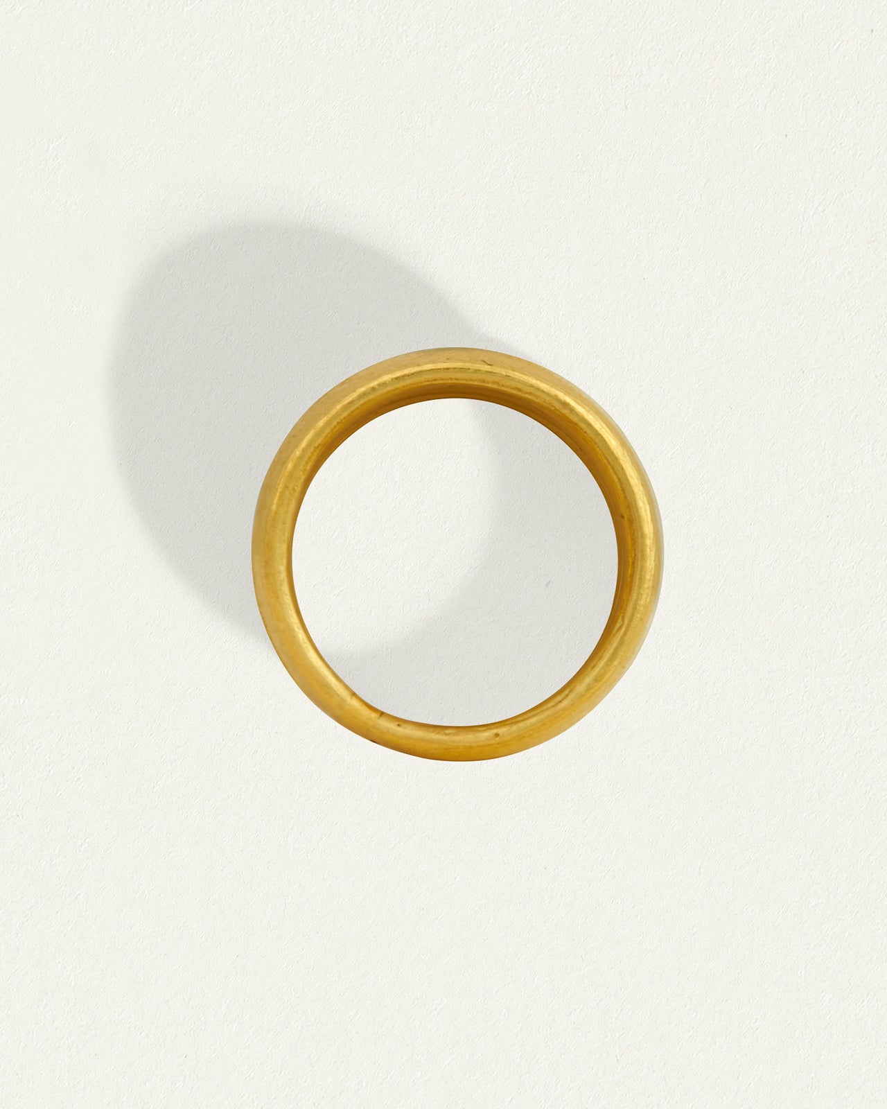 Crafted from pure 24k gold with a satin finish, this tapered cigar band ring exudes a rich, tactile lustre that enhances its ancient allure.