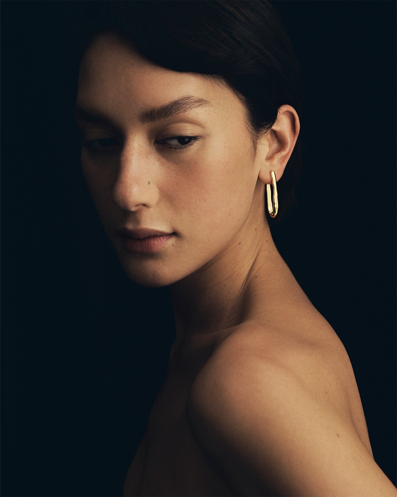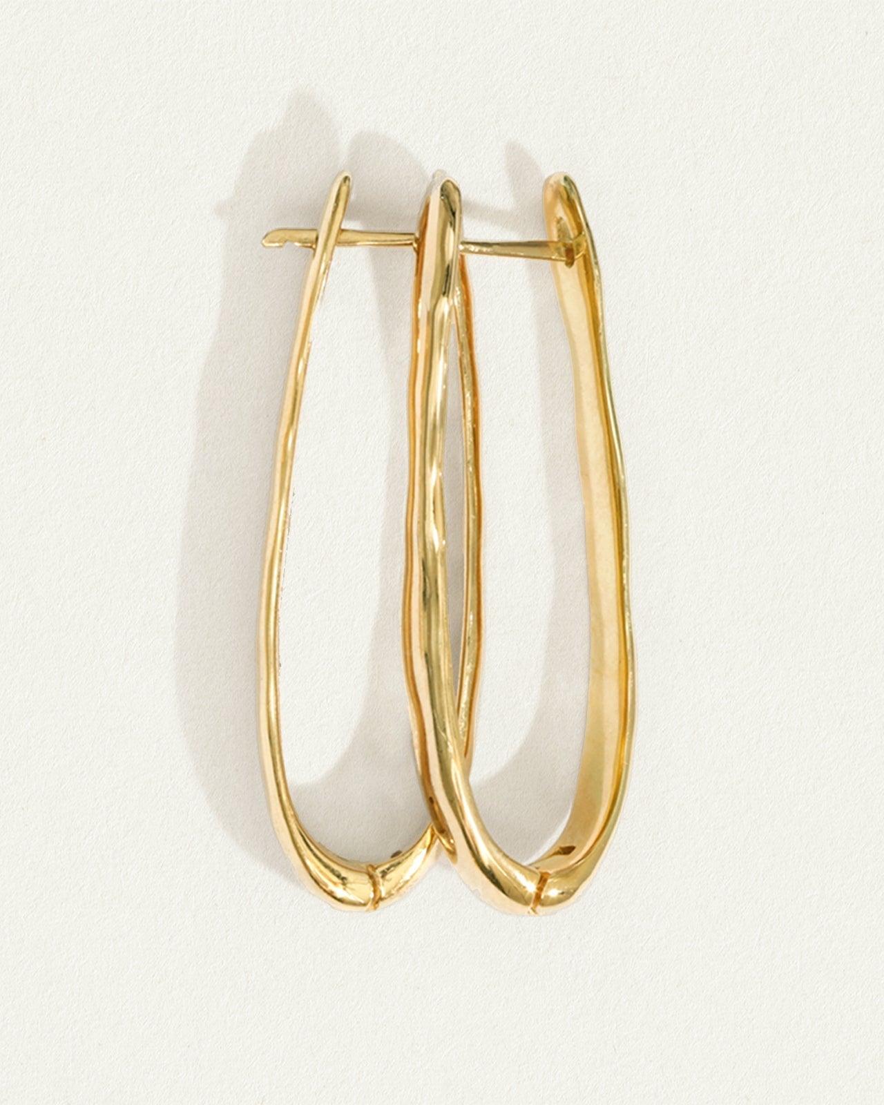The Kaolin Earrings in 18K Gold Vermeil are a long, oval hoop earring with a lever closure to hug the ear. Named after Kaolin, the soft clay used to make fine china and a nourishing ingredient in skincare; the raw organic lines are reminiscent of hand formed pottery, beautifully contrasted with a highly polished finish and a distinctly modern ancient feel.