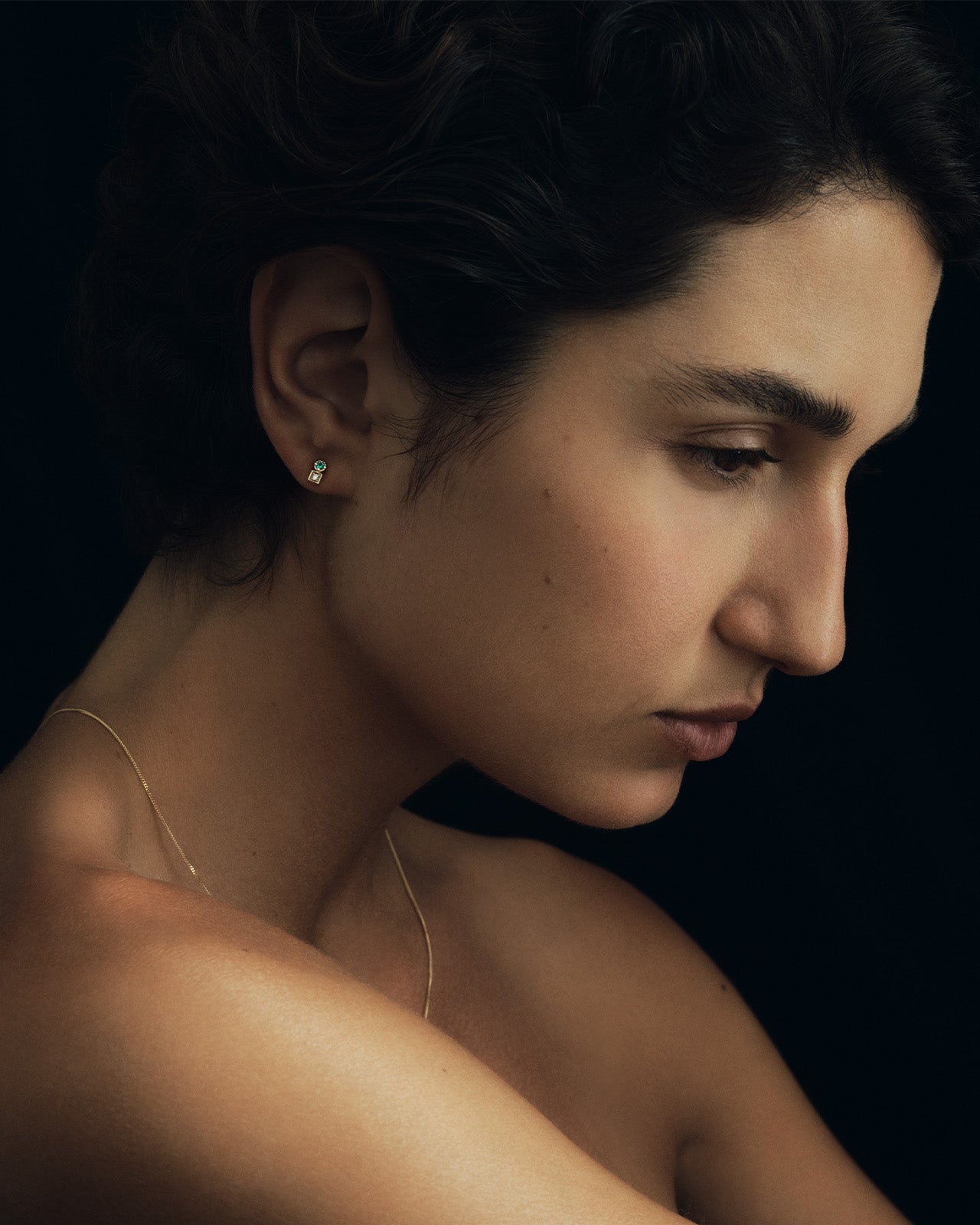 A fine gold single stud earring that speaks of celestial wonders and the quiet stirrings of the heart, the Lenci Stud pairs a natural emerald with a brilliant lab diamond.