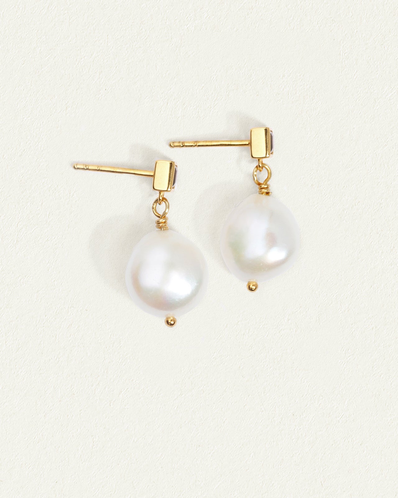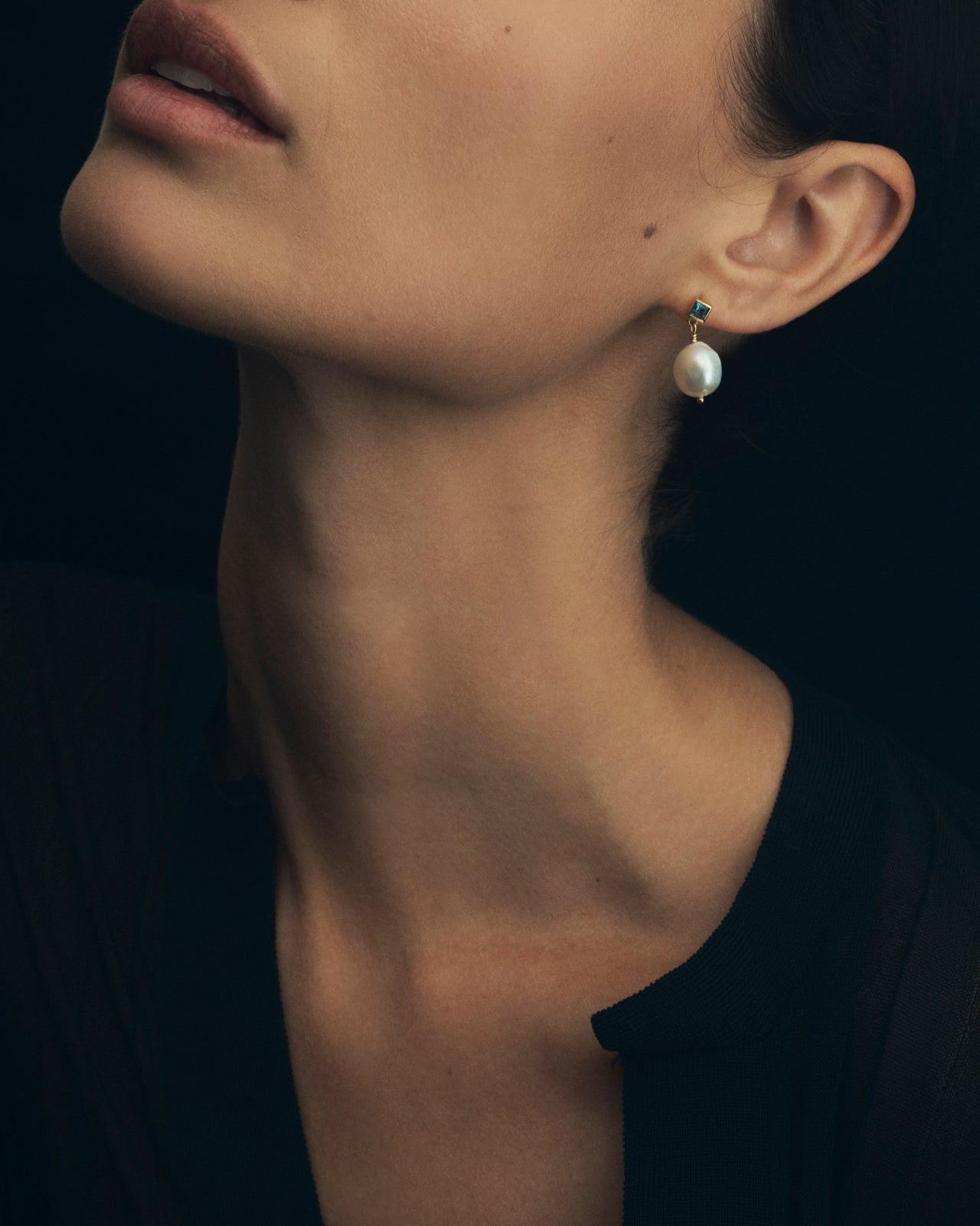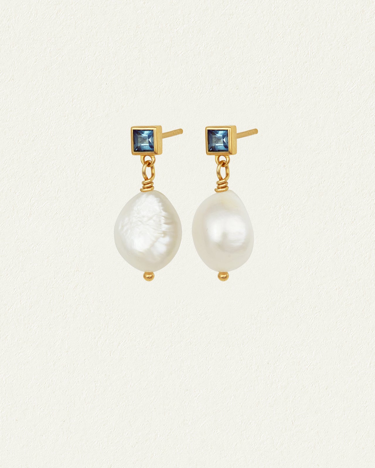 Adorn yourself in the opulence of the Lulu Earrings; featuring baroque pearl drops suspended from princess-cut blue topaz. Designed for life’s celebrations, these 18k gold vermeil pearl drop earrings offer a contemporary twist on classic sophistication… their cerulean hues and organic lines evoke the fluidity of water.