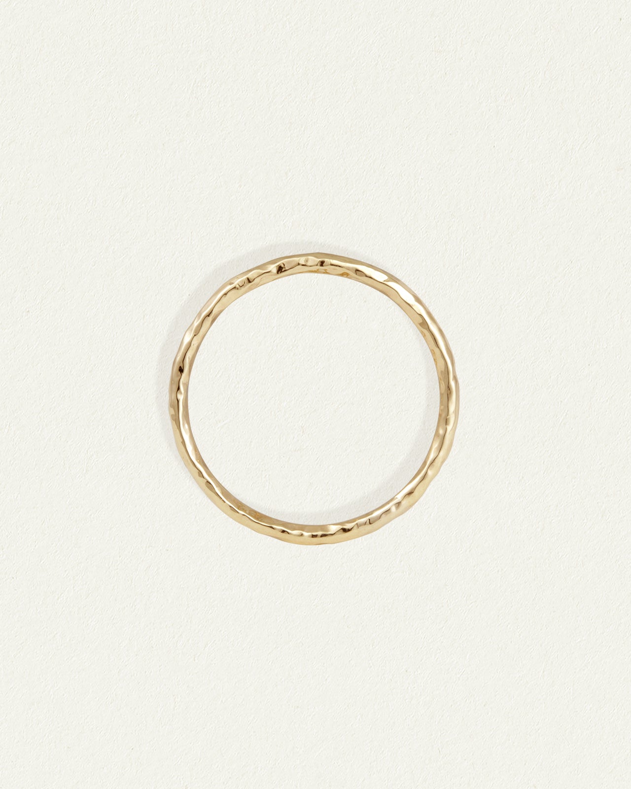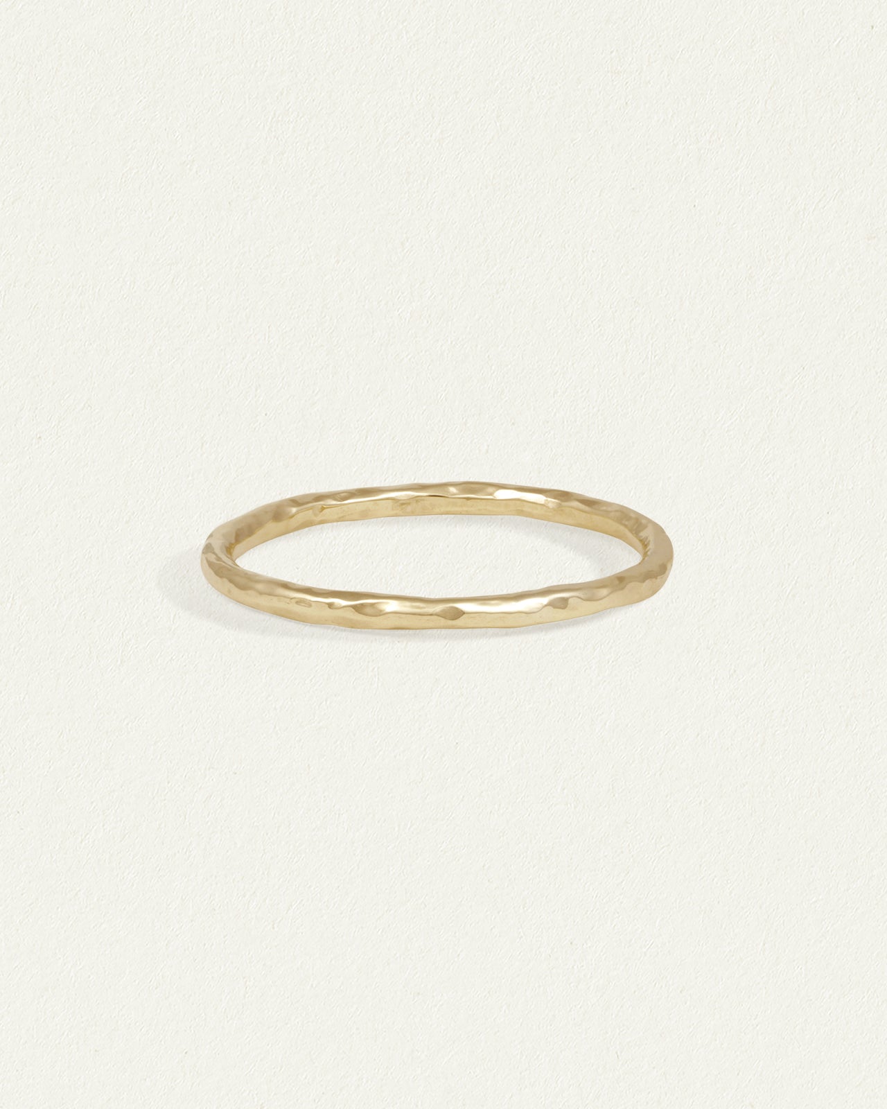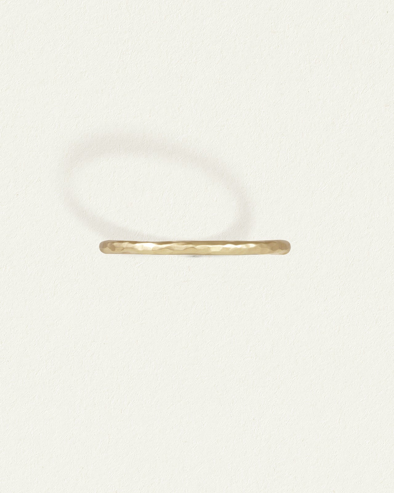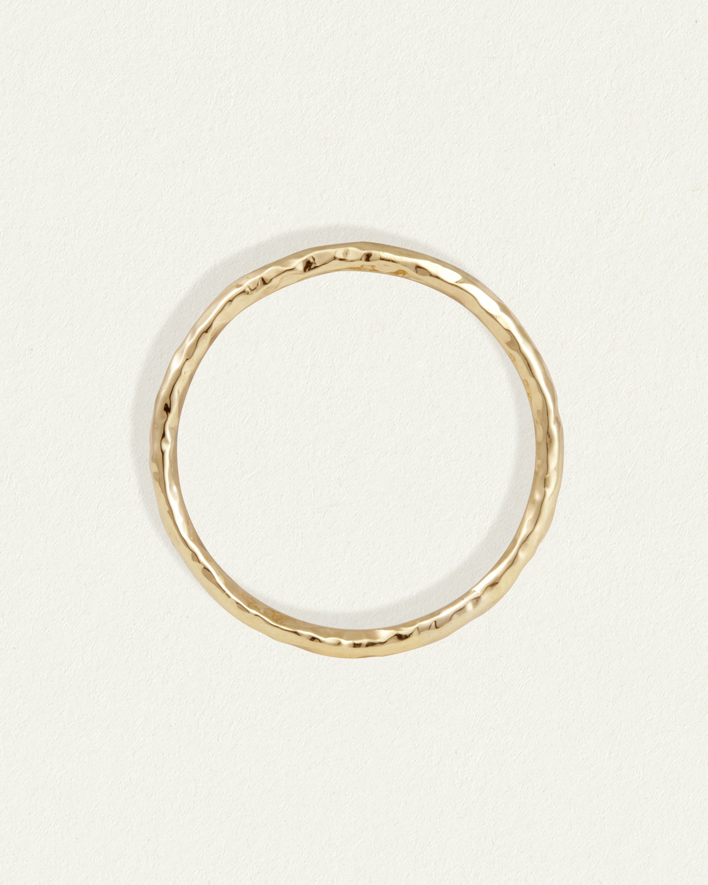 A fine gold band with a gently hammered texture, it offers a harmonious blend of simplicity and artisanal craftsmanship.