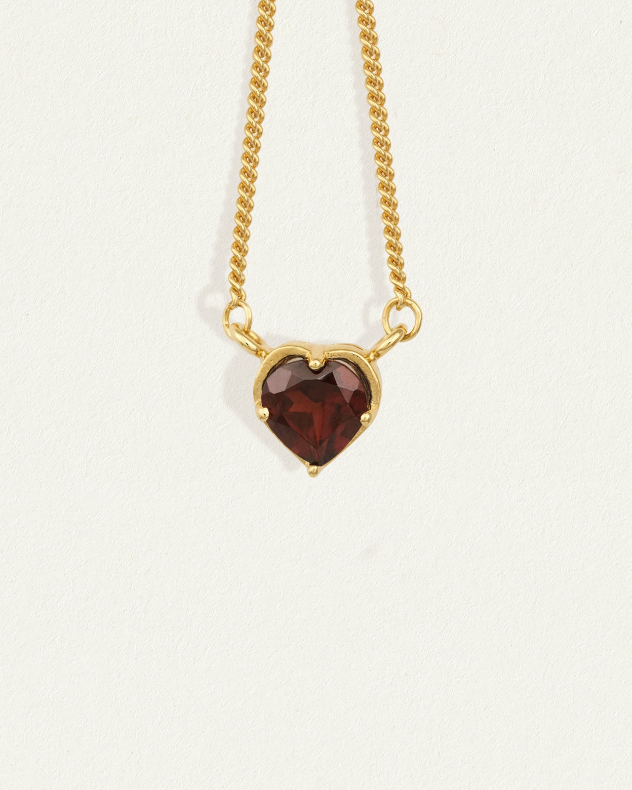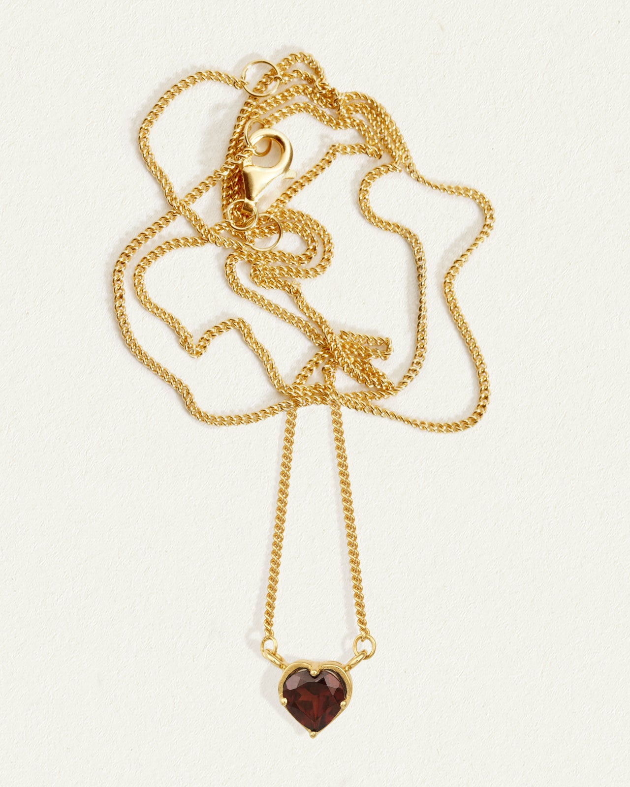 The Venus Solitaire Necklace embodies romance in its purest form. Suspended from a delicate curb chain, a heart-shaped garnet is embraced by a setting of lustrous 18k gold vermeil.