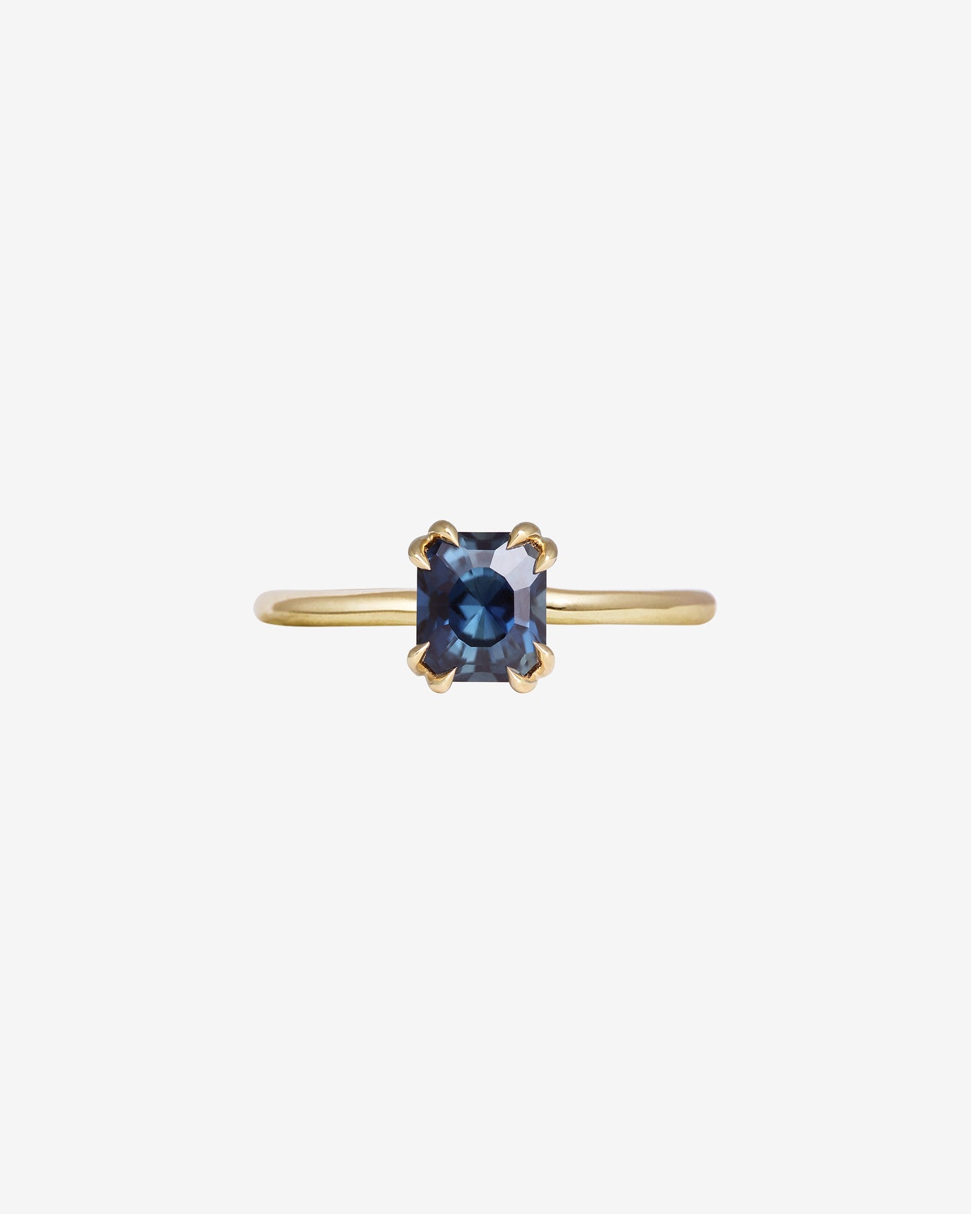 This solitaire ring showcases a one-of-a-kind 0.96ct cushion-cut blue sapphire in our iconic dual-claw Allium setting.